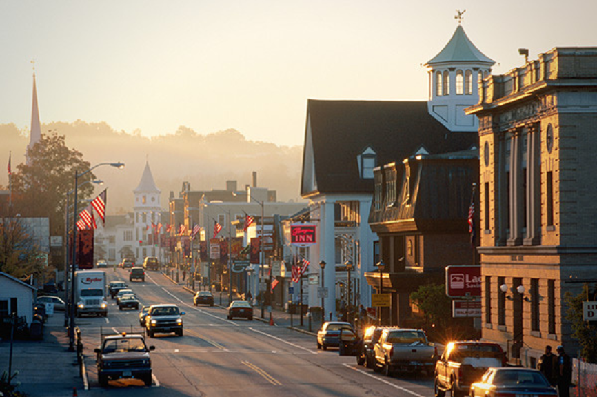 Make your way to Littleton, a charming town at the northern edge of the White Mountains. Stroll the antique shops and walk the beautiful river path — the kind of early evening wander that makes you feel like you've discovered a place all your own. Spring gives Littleton a particular magic, with the Ammonoosuc River running high below.