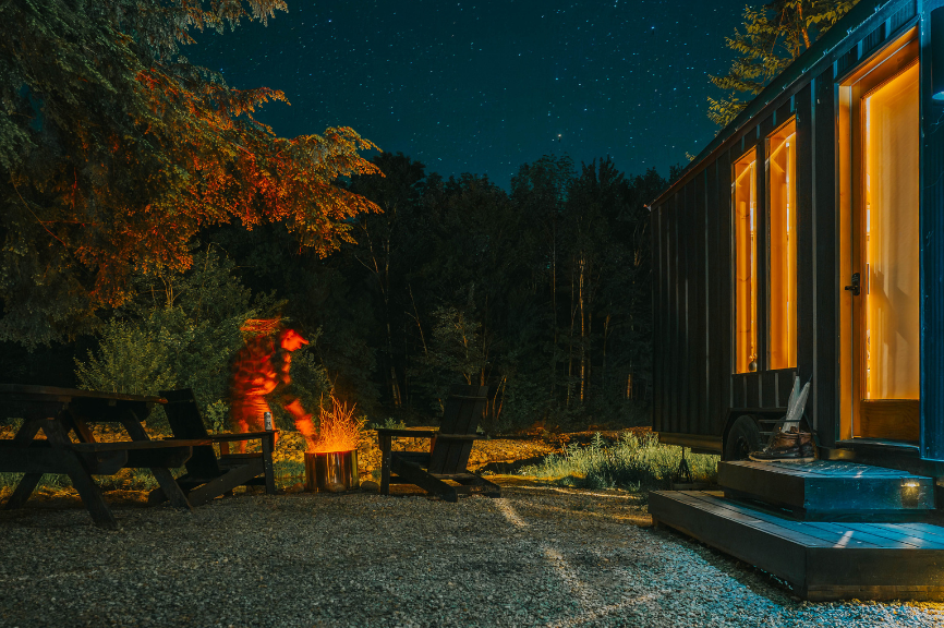 Back at camp, the smokeless firepit is calling. Spring evenings carry a fresh bite in the air — perfect weather for layering up and sitting close to the fire. The skies over the White Mountains are remarkably clear on spring nights, with the Milky Way making its seasonal return. Pull up an Adirondack chair, share stories, and let the brook and the crackle of fire do their work.